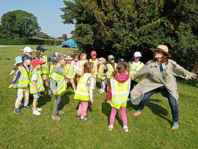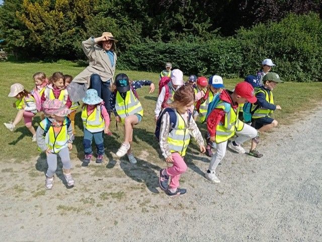 Une belle journée que ce mardi 6 juin au Parc d'Enghien! Nous avons réalisé un tas d'activités pour découvrir les animaux qui vivent autour et dans l'étang, on s'est même déplacé en imitant la grenouille, l'araignée d'eau, le brochet… Nous avons retrouvé des cartes-indices dans la nature, avons observé l'étang, écouter le chant des grenouilles, … Bref, une belle journée sous le soleil!