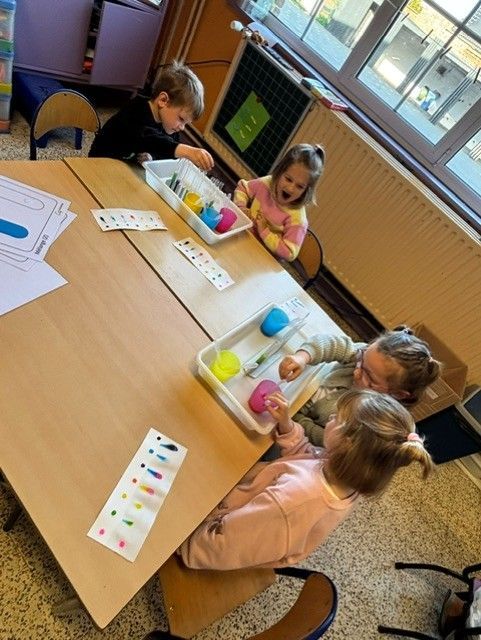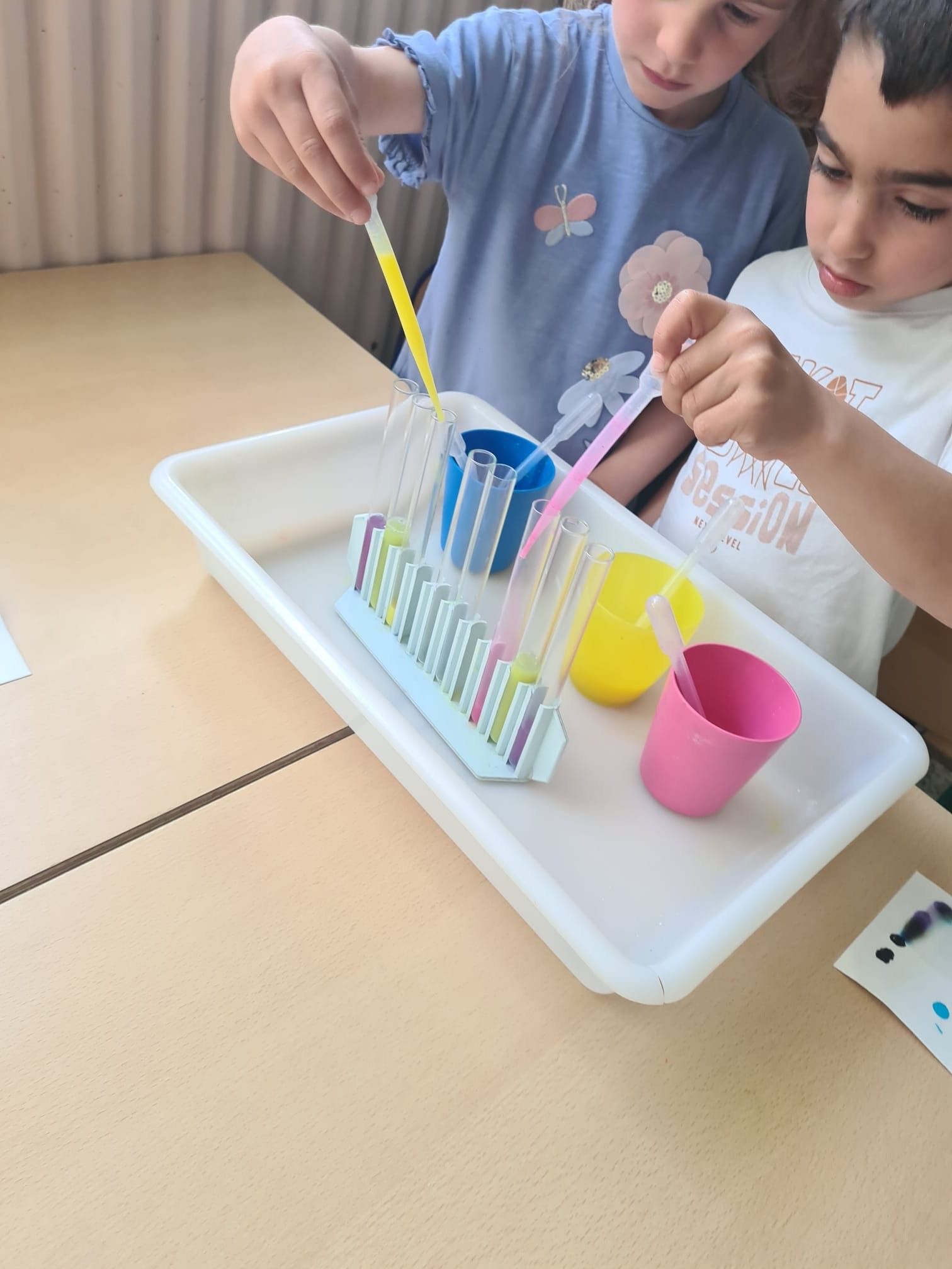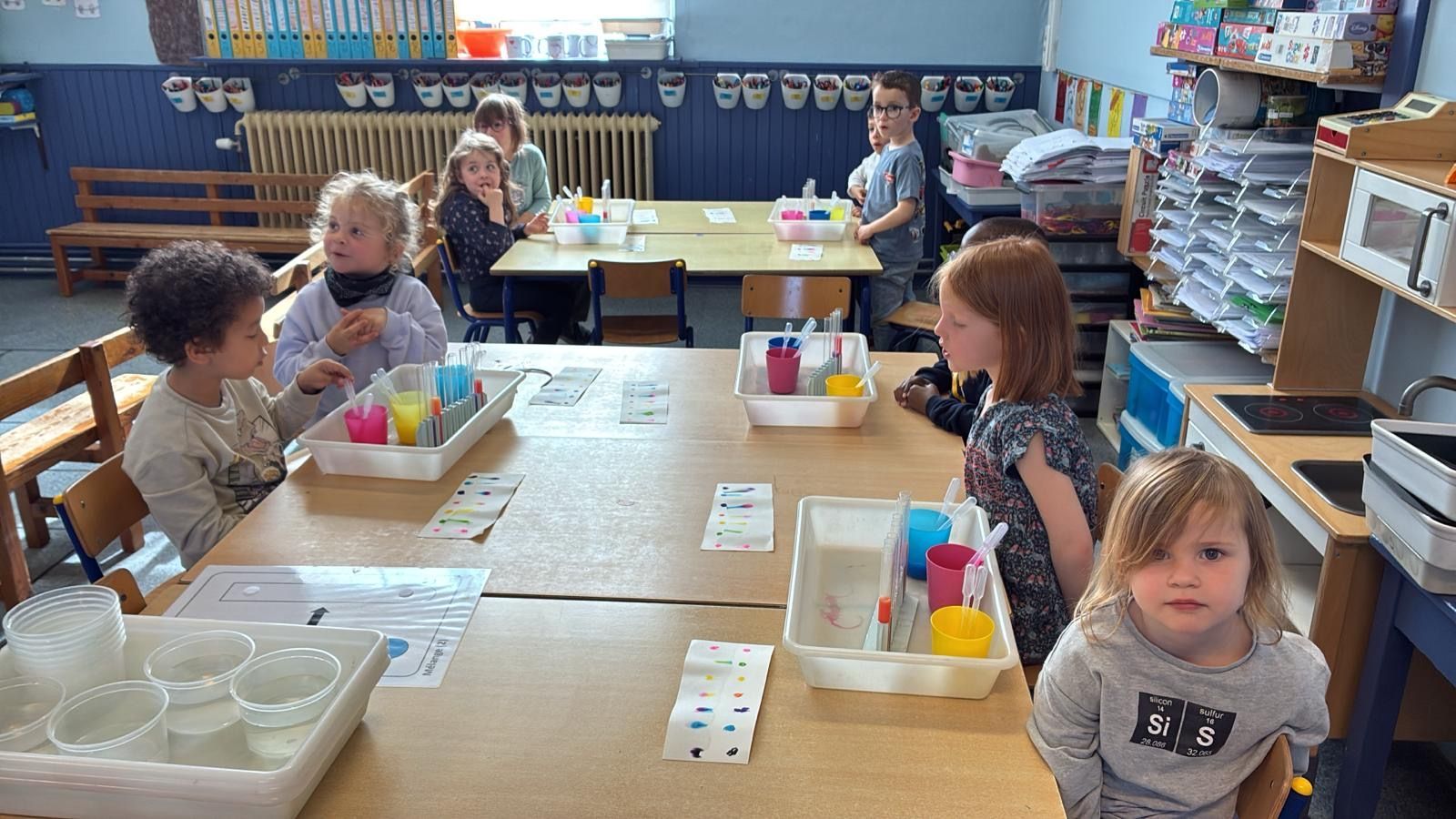 Les élèves de M2/M3 ont vécu un bel atelier pratique pour partir à la chasse aux couleurs : ils ont décomposé les couleurs par chromatographie; ont découvert les couleurs primaires picturales, ont dû retrouvé la couleur disparue et recomposé des mélanges et gammes de couleurs à l’aide d’éprouvettes et de plasticine. Trop chouette !