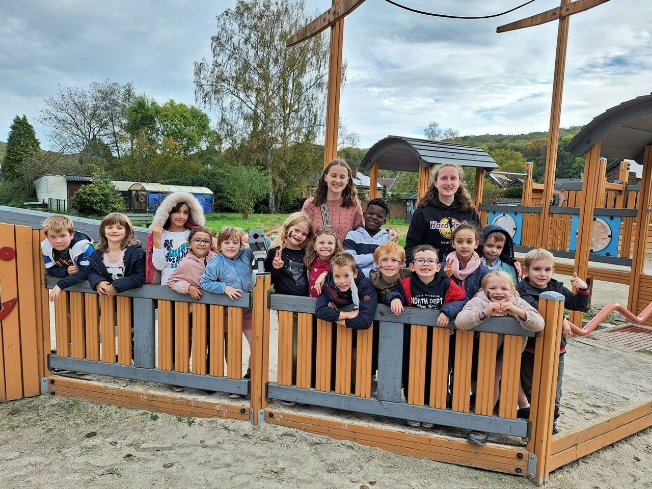Les élèves de M2/M3 ont eu la chance d'aller ramasser quelques trésors d'automne : noisettes, glands, châtaignes, feuilles, ... et goûter framboises et raisins.