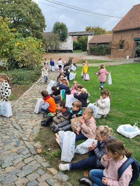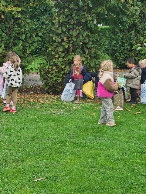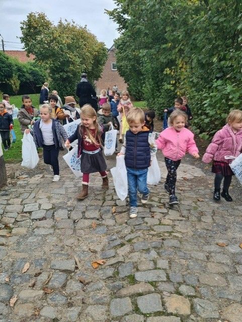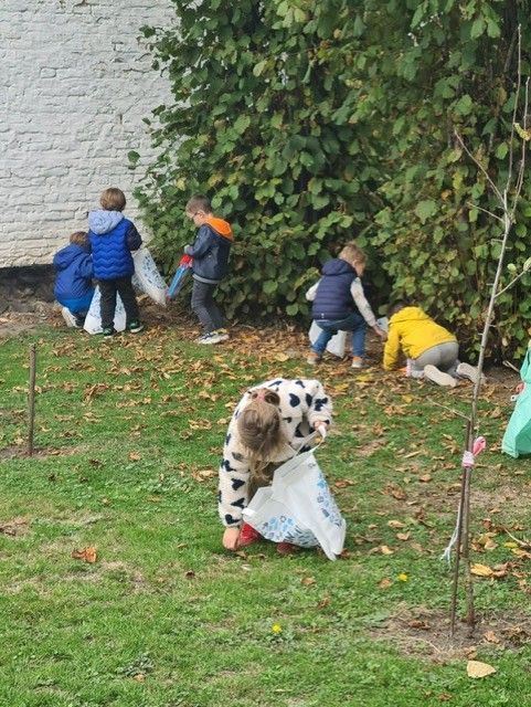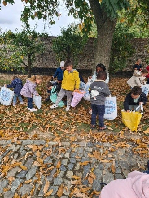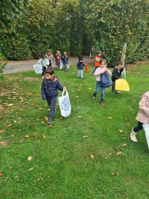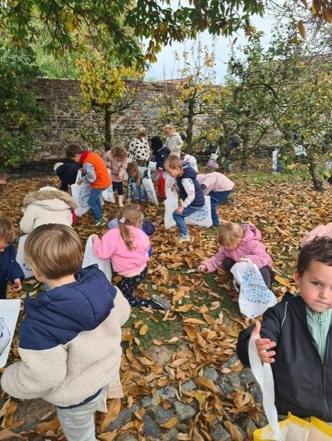 Les élèves de M2/M3 ont eu la chance d'aller ramasser quelques trésors d'automne : noisettes, glands, châtaignes, feuilles, ... et goûter framboises et raisins.