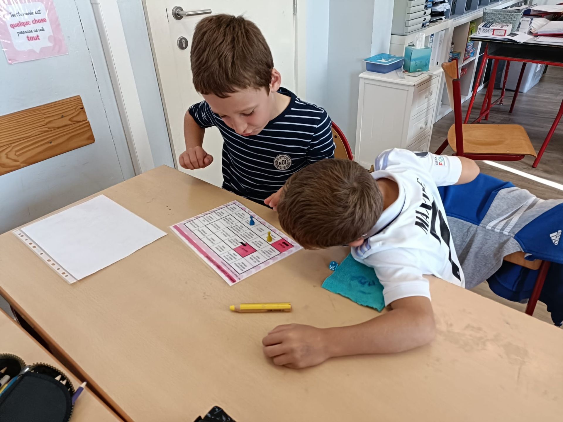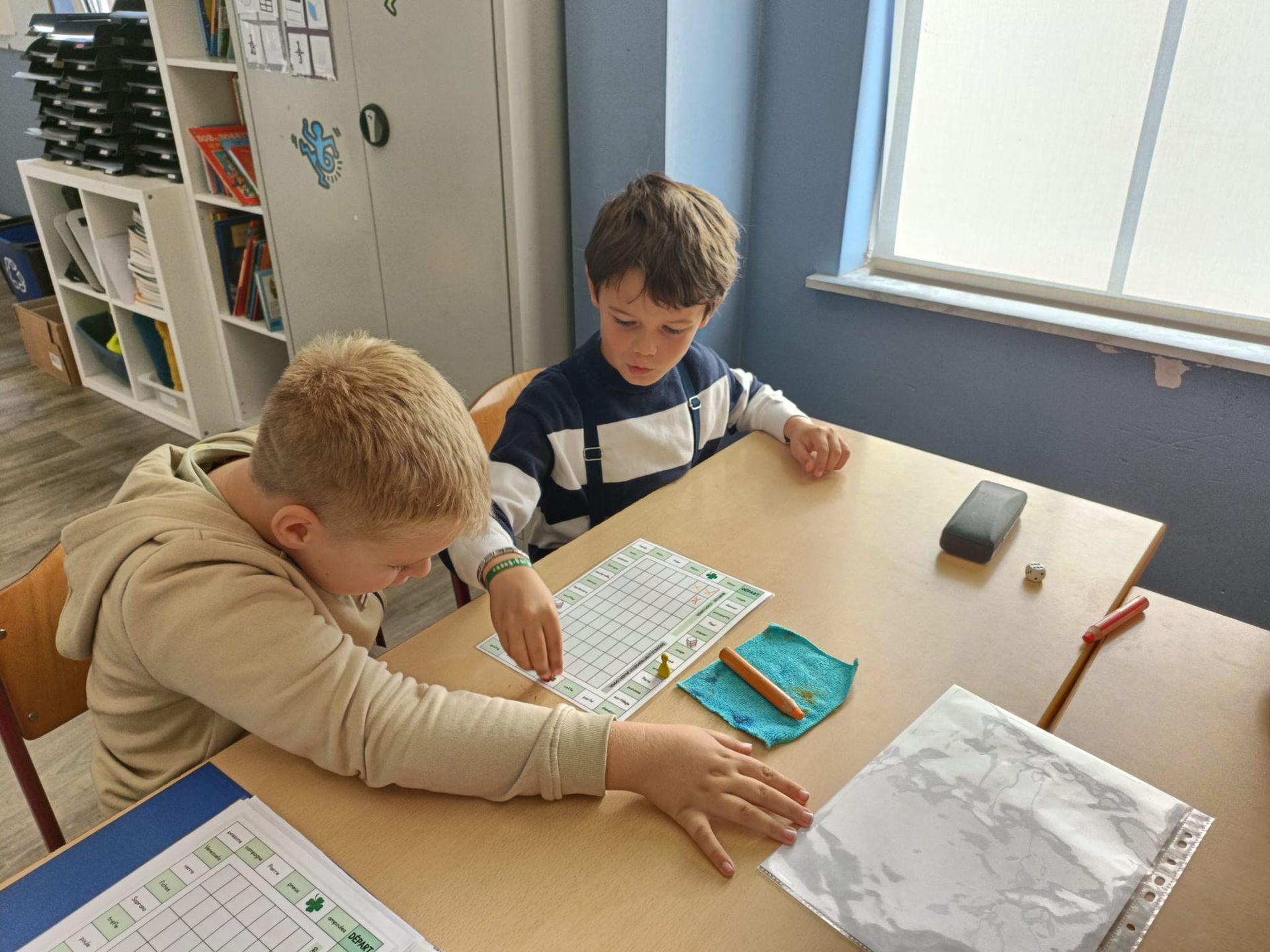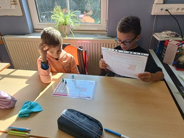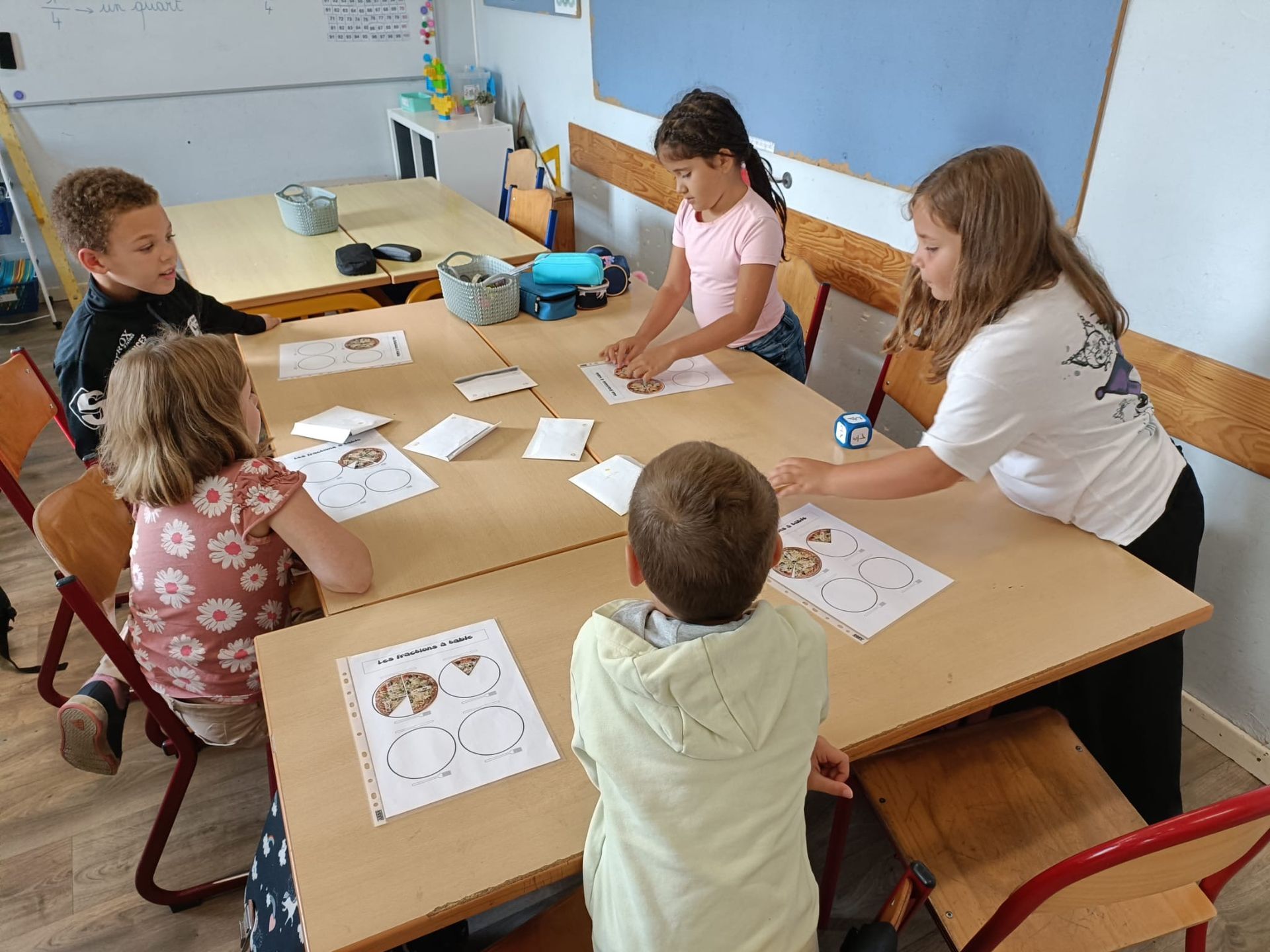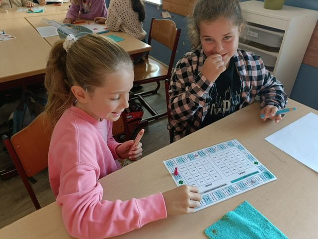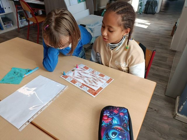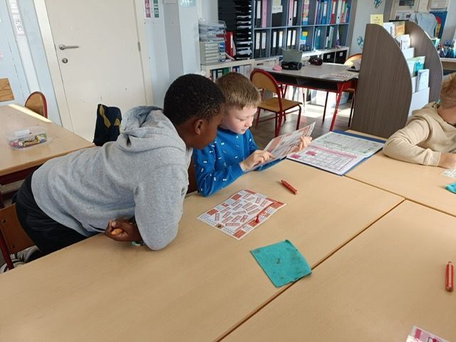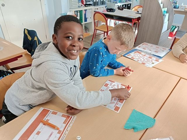 En P3, nous avons entrainé nos apprentissages sur le nom propre et nom commun avec des jeux de société. Nous avons également joué au jeu des pizzas! Ce jeu permet de comprendre les concepts de numérateur et dénominateur ainsi qu'une première approche des fractions équivalentes.