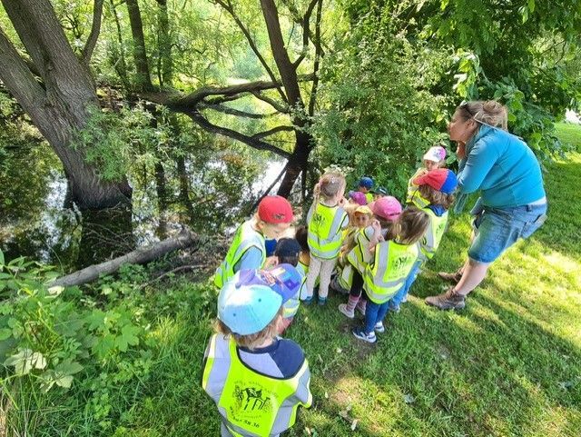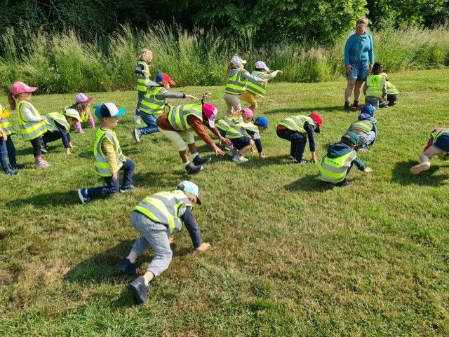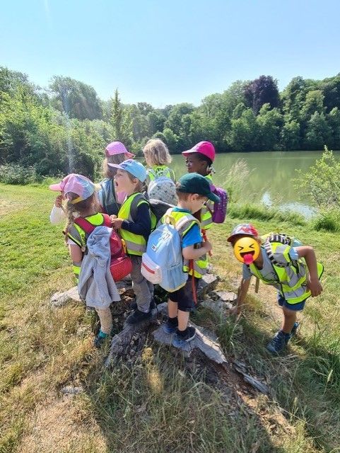 Une belle journée que ce mardi 6 juin au Parc d'Enghien! Nous avons réalisé un tas d'activités pour découvrir les animaux qui vivent autour et dans l'étang, on s'est même déplacé en imitant la grenouille, l'araignée d'eau, le brochet… Nous avons retrouvé des cartes-indices dans la nature, avons observé l'étang, écouter le chant des grenouilles, … Bref, une belle journée sous le soleil!