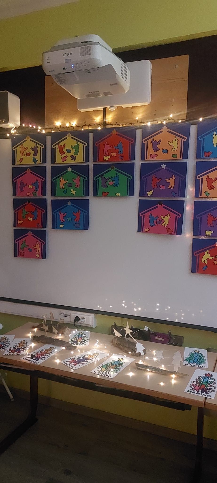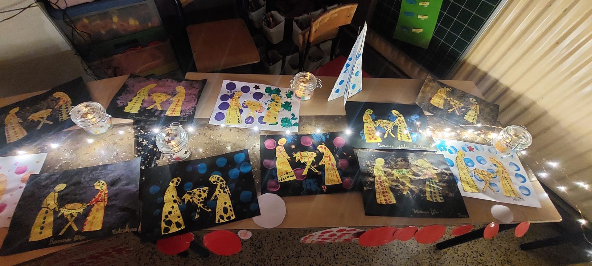 Nos festivités "entre arts et cœurs" ont eu la chance de se dérouler dans la bonne humeur et sous un temps sec et doux. Les enfants ont, pour l'occasion, revisité le tableau de la Nativité en le recréant à la lumière d'artistes célèbres. Bravo à tous pour vos idées lumineuses ! Merci aux enfants pour leur chefs d'œuvre et leur vente au profit de l'association "La fermette" et merci à l'équipe éducative pour son investissement sans faille !