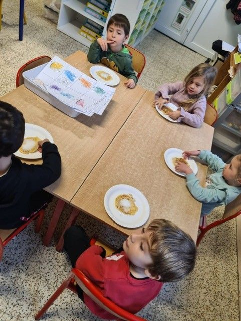 Cette première semaine a débuté par les joies de la neige ! Petits et grands se sont bien amusés. Mais c'était aussi l'occasion de travailler les mathématiques en abordant le concept d'empreintes de solides !