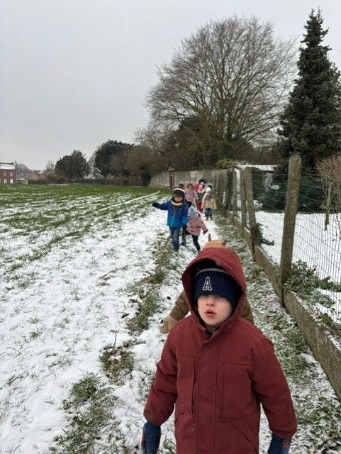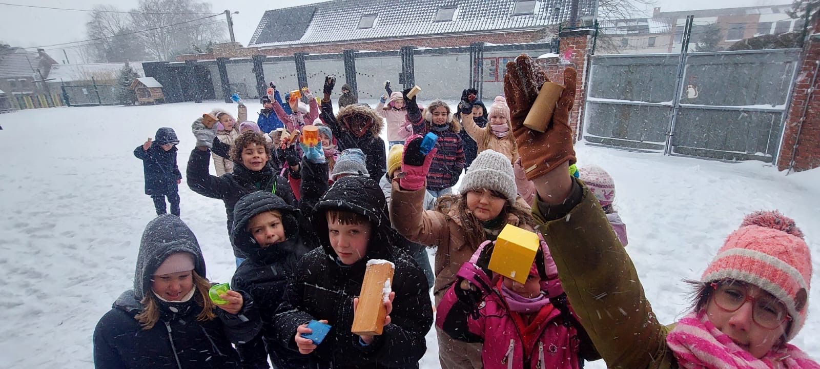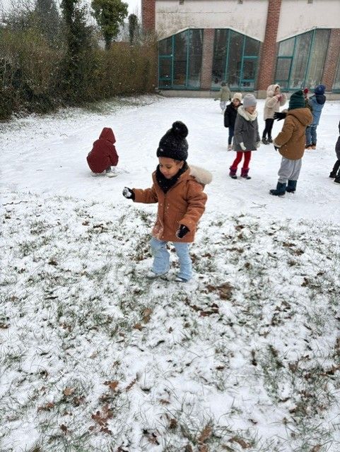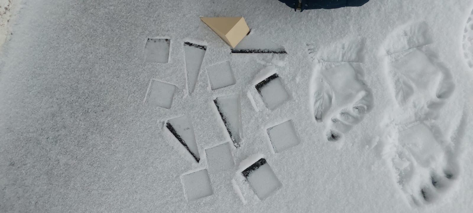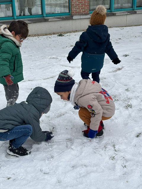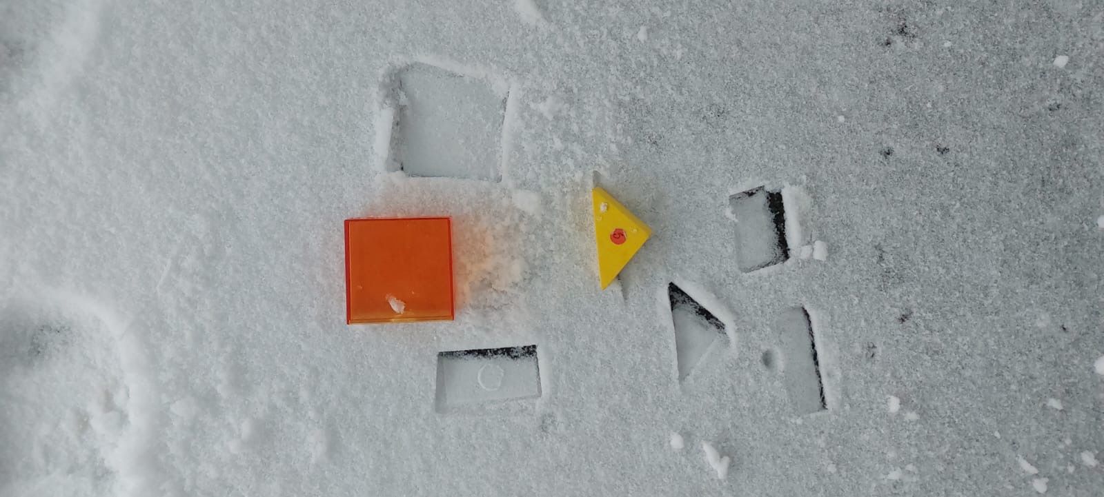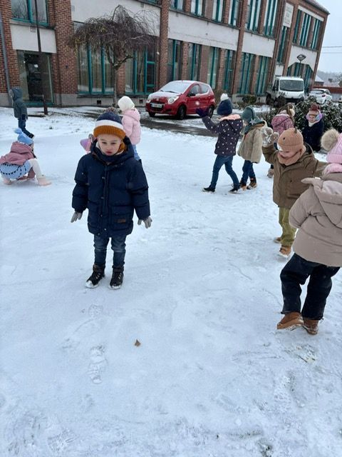 Cette première semaine a débuté par les joies de la neige ! Petits et grands se sont bien amusés. Mais c'était aussi l'occasion de travailler les mathématiques en abordant le concept d'empreintes de solides !