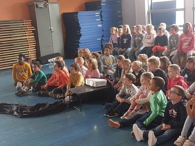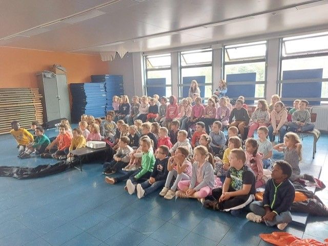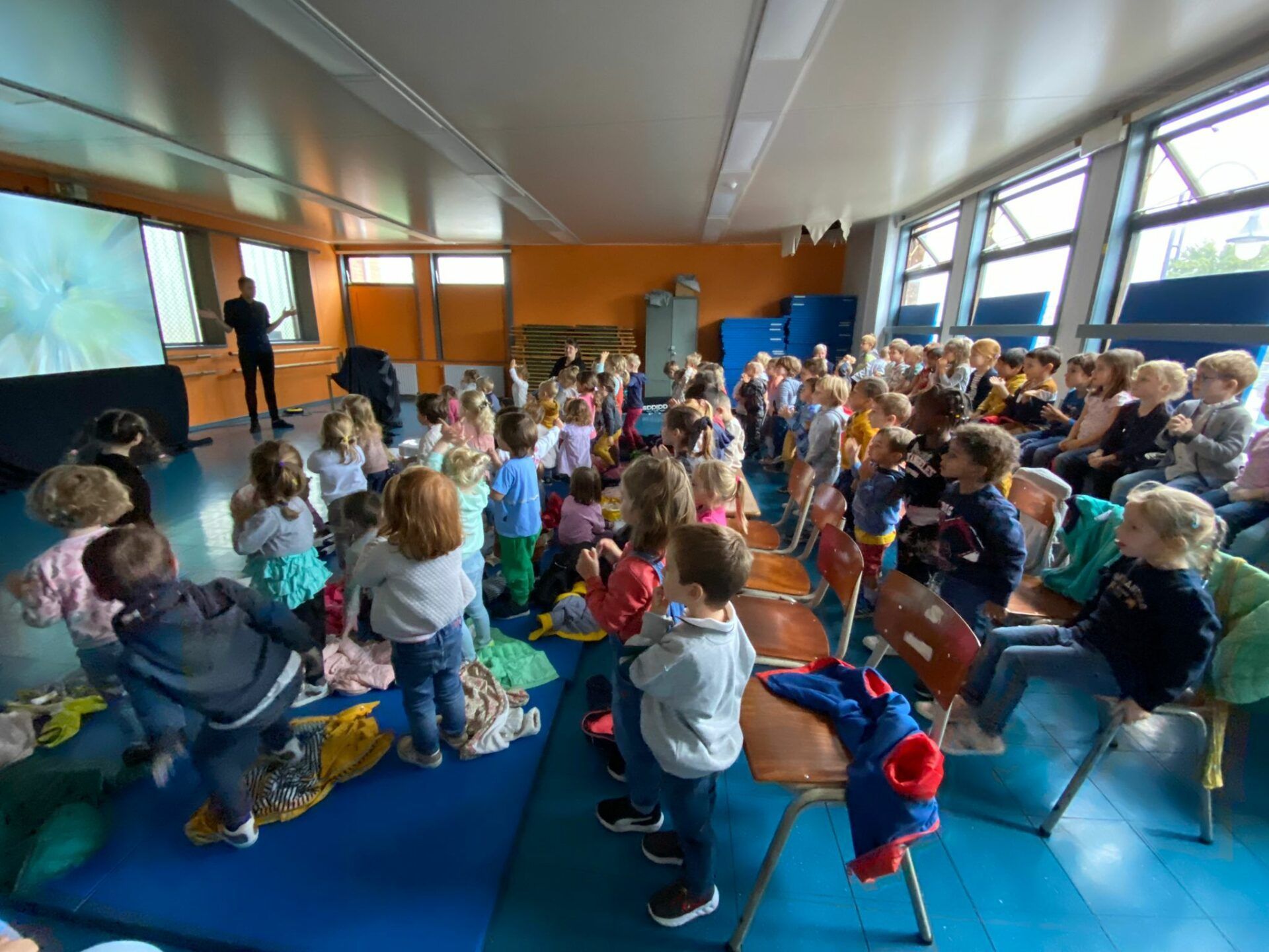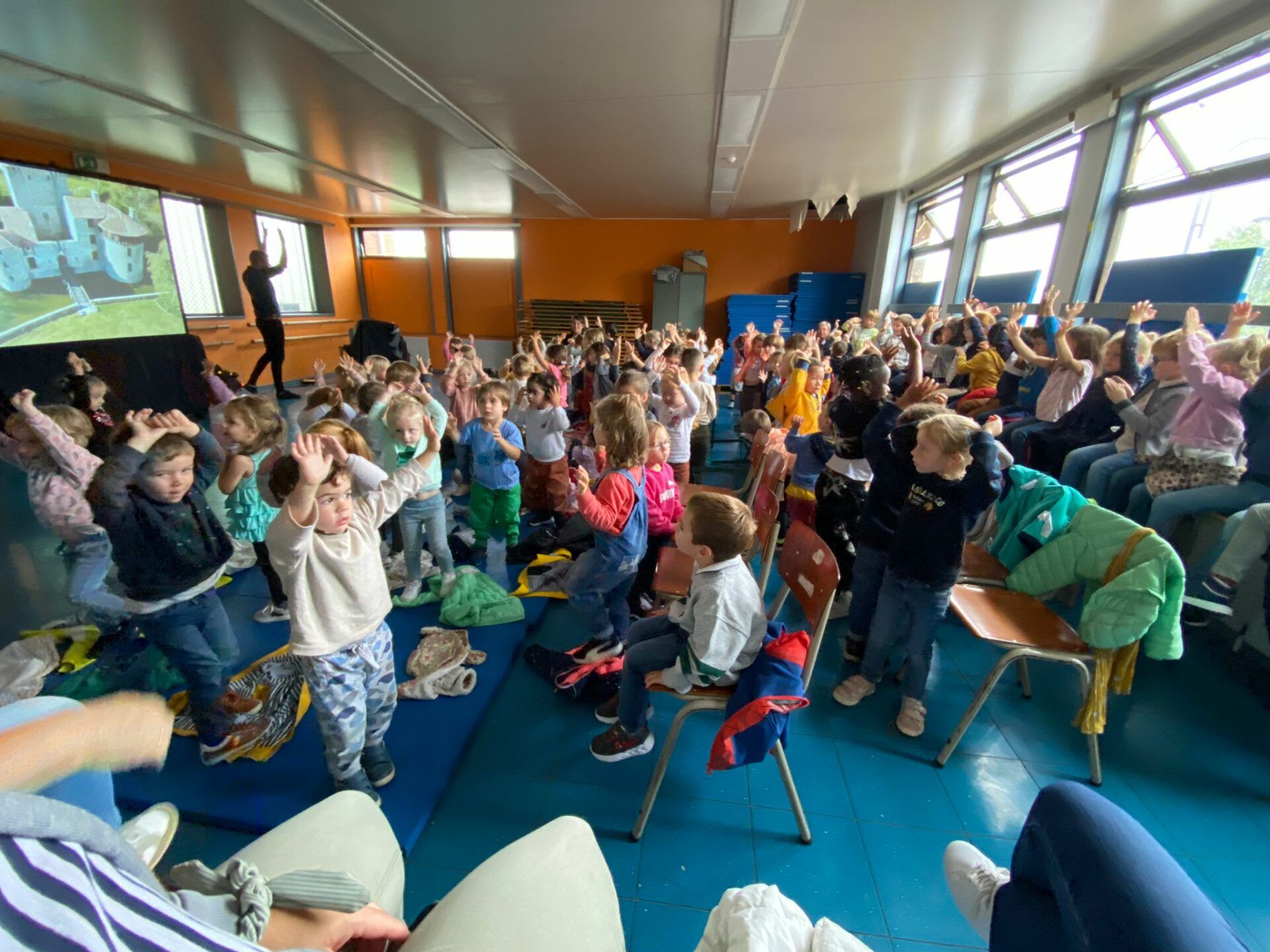 Les élèves de maternelle, P1 et P2 ont eu la chance de découvrir le spectacle interactif » Brunor et le prince endormi », ce jeudi 21 septembre :