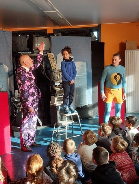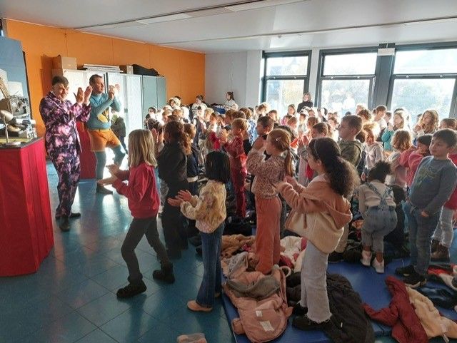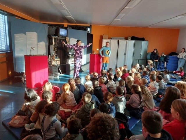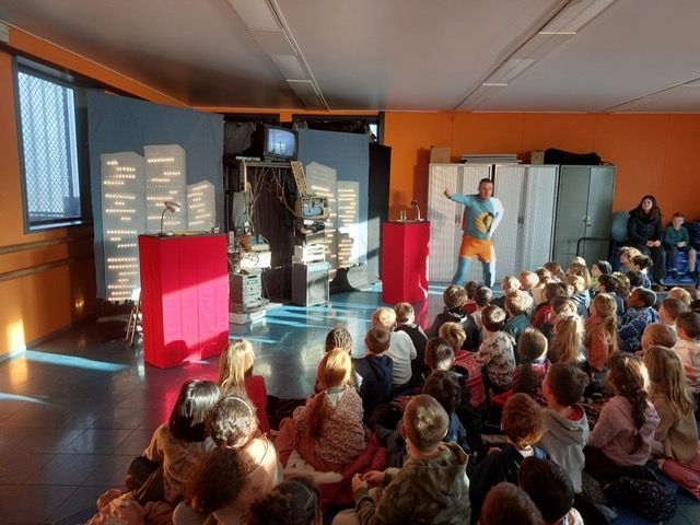 Les élèves de primaire ont, eux, eu la chance d'assister au spectacle intitulé « ActifMan vs Gaspiator » qui traite de la problématique du réchauffement climatique et plus particulièrement des petits gestes à faire au quotidien pour aider notre terre à s’en sortir. Ce spectacle drôle et participatif fait passer un message de respect de l’environnement sans pour autant être moralisateur.