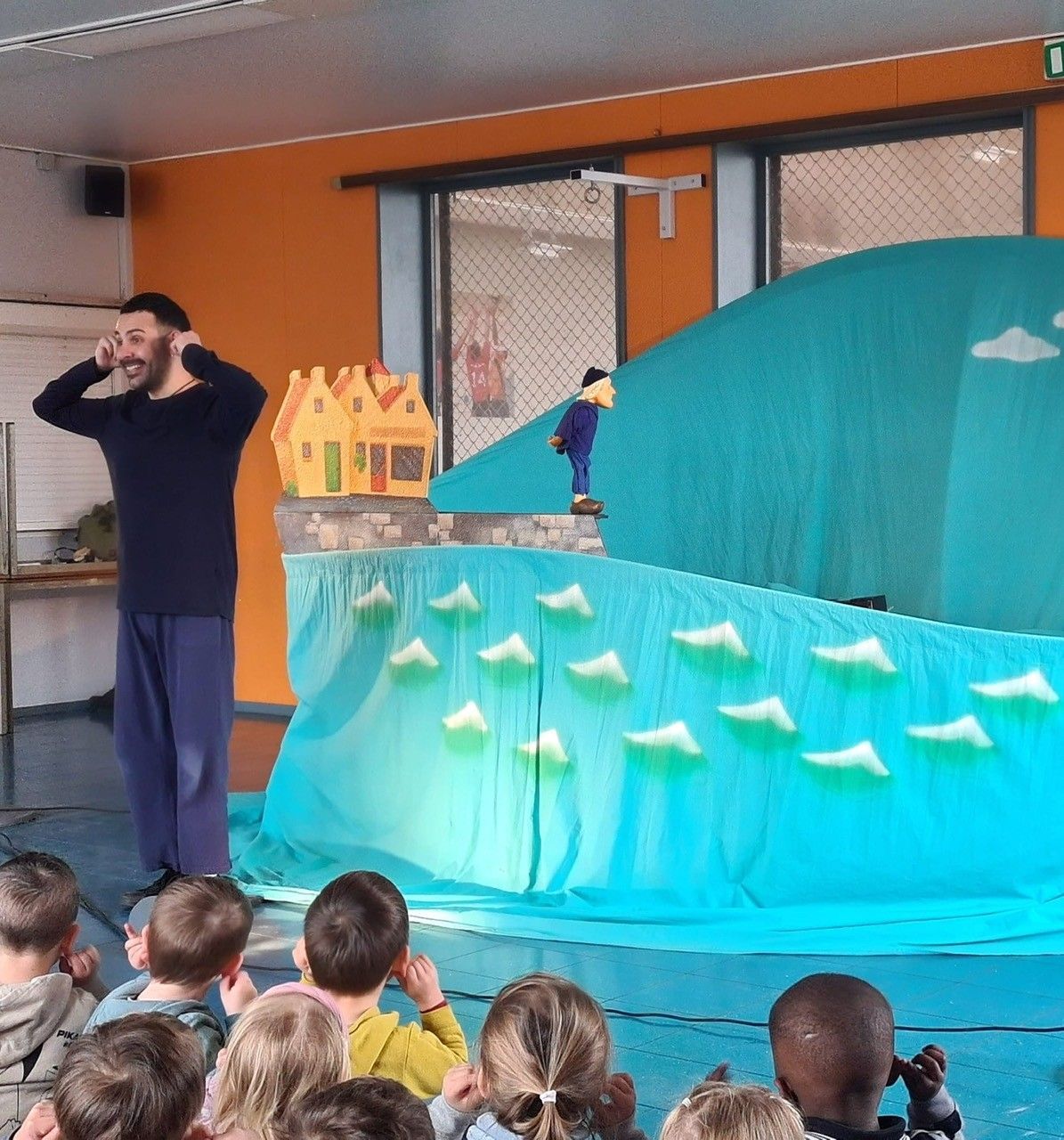 Les enfants de maternelle, de P1 et de P2 ont eu la chance d’assister au spectacle "Leïla et la baleine" par la compagnie des 3 chardons. Un joli moment  enchanteur, plein de poésie et d'émotions !