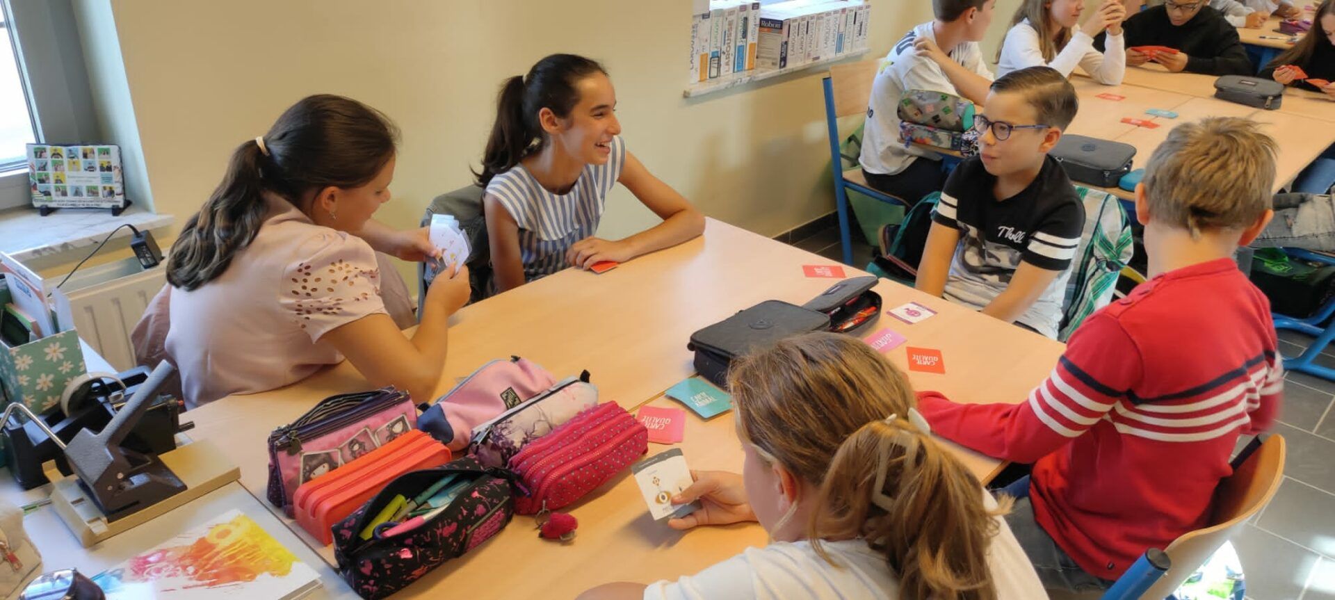 Après la convivialité du petit-déjeuner organisé par l’AP, dans les classes, c’est déjà l’effervescence : bingo pour apprendre à se connaitre, activités sur la mythologie, frise du temps, jeu « totem », dégustation de livres et missions pour retrouver un vol de stylos! Tout un programme!